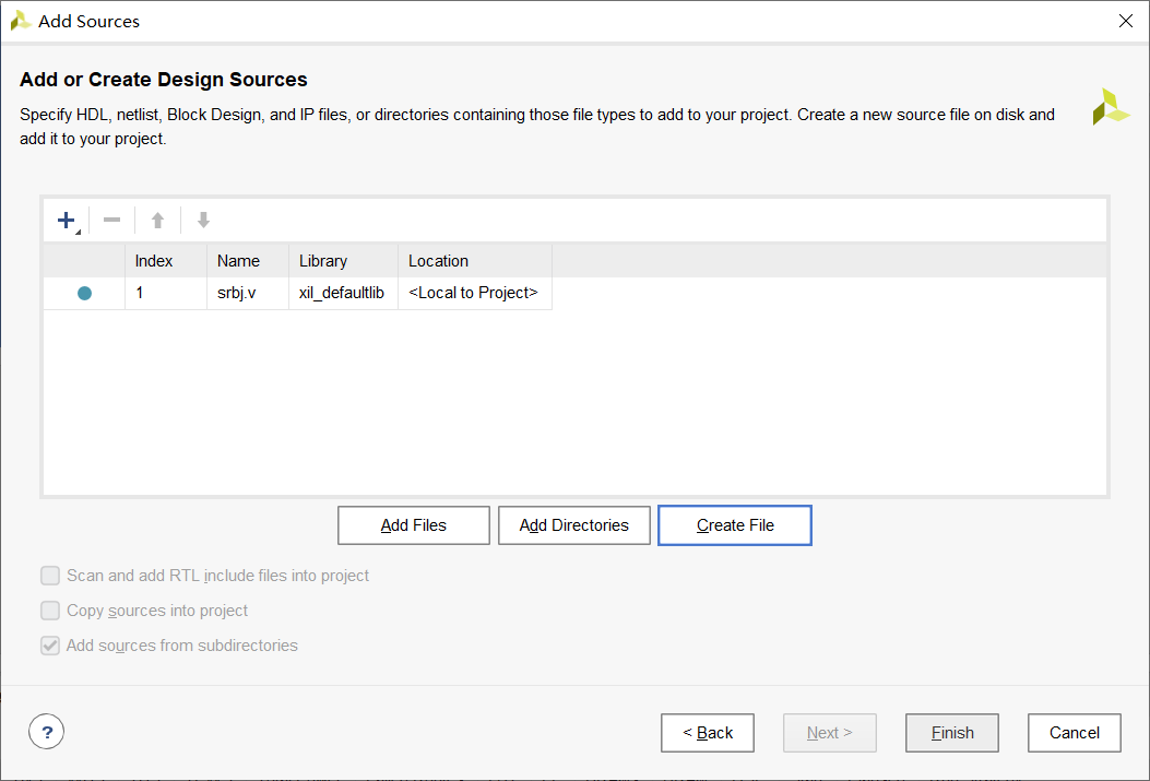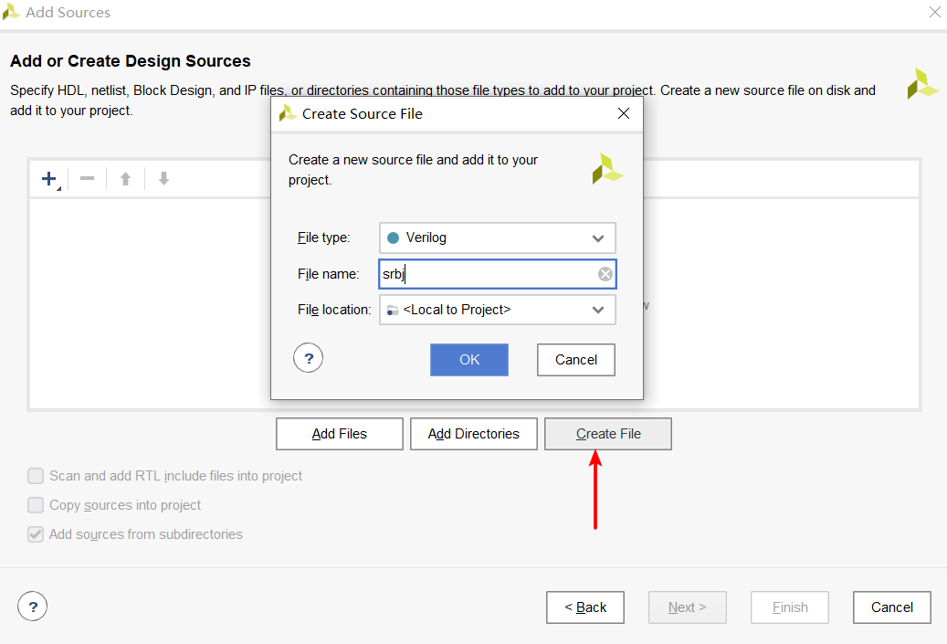 点击create file对文件的名字、路径和语言进行设置,这里只设置设计文件的名字即可。