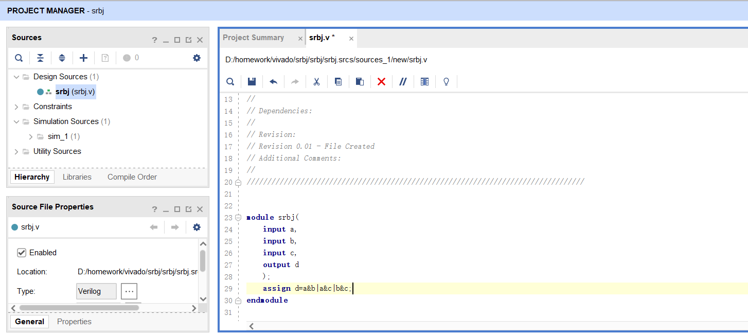 下面以三人表决电路的verilog仿真来了解一下vivado软件的使用。